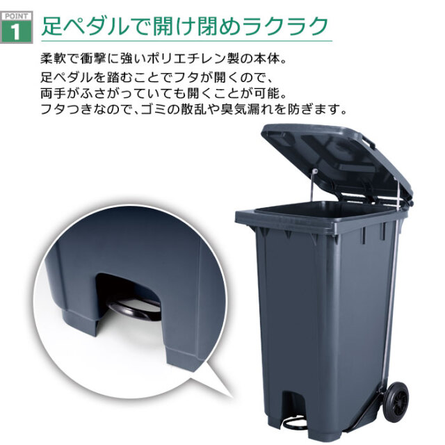 - フタ付きなので、ゴミの散乱や臭気漏れを防ぎます。