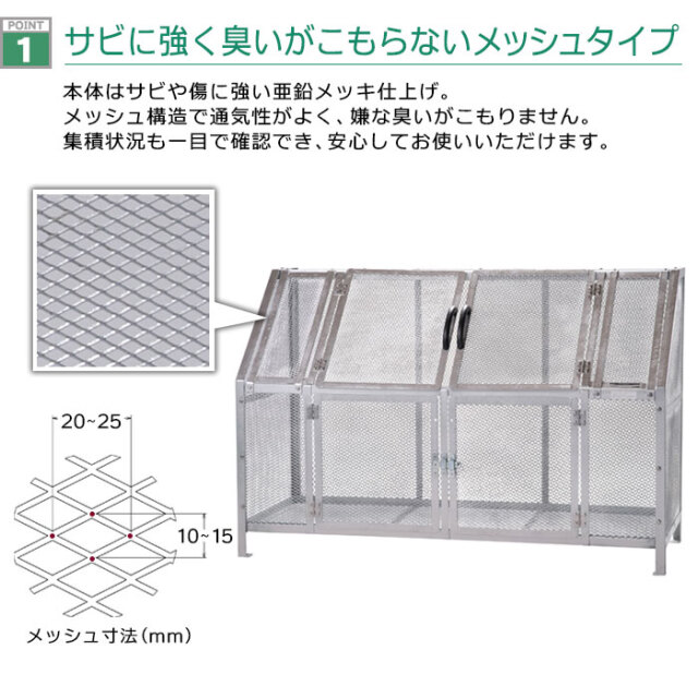 - 臭いのこもらないメッシュタイプ、集積状況も一目で解るから安心です。