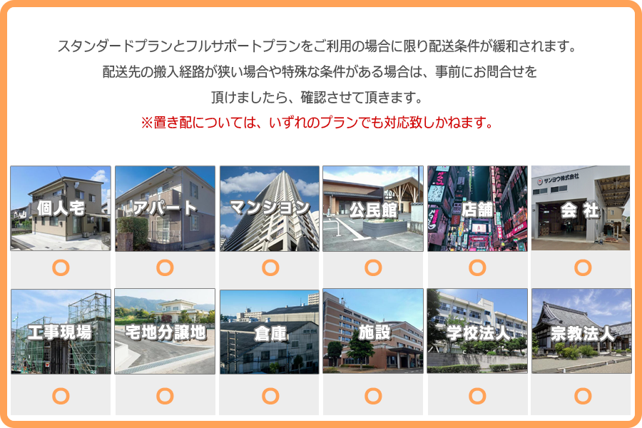 - 荷卸しの際には、お客様立会いの上、必ずトラック停車位置のすぐ脇に、荷卸し場所の確保をお願い致します。