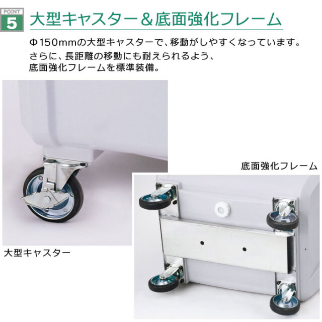 - Φ150mmの大型キャスターで、さらに移動がしやすくなっています。