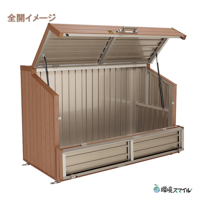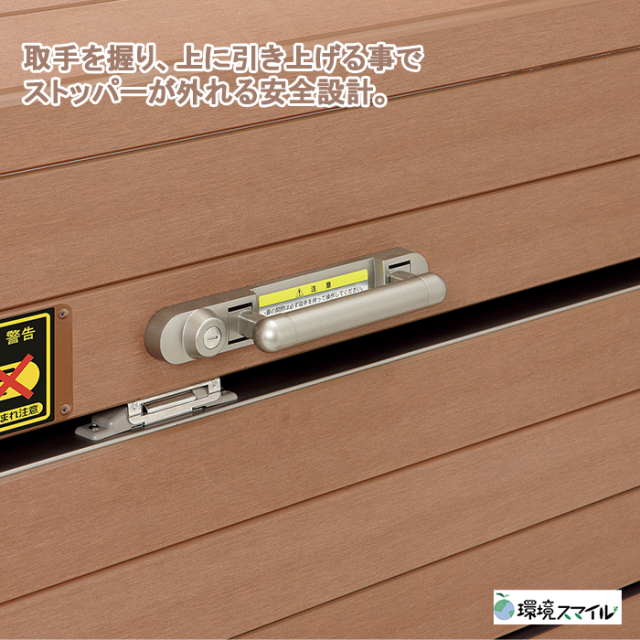 - 耐候性に優れた木質樹脂を採用したゴミストッカーです。