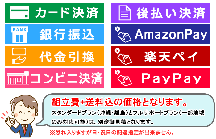 - 合計300,000円以上のお買い上げの場合は、銀行ATM・ネットバンキングでお支払いください。