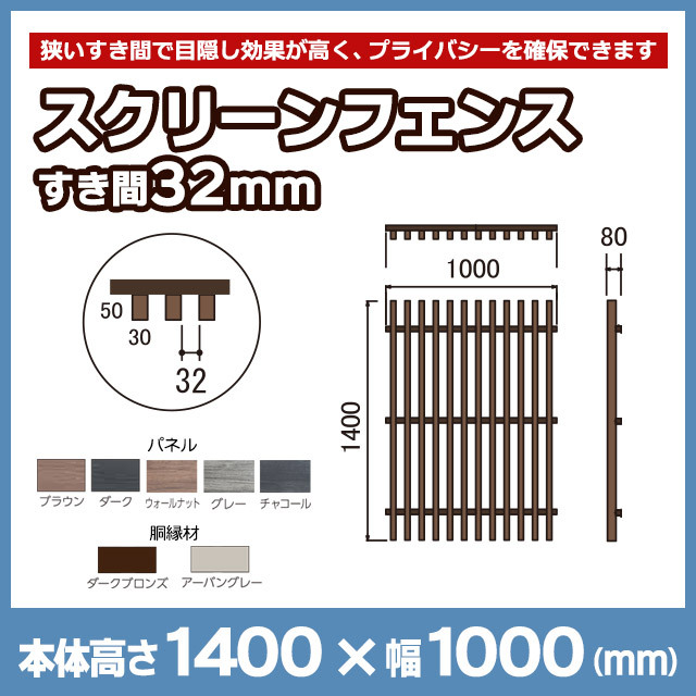 スクリーンフェンス すき間32mm H1400mm