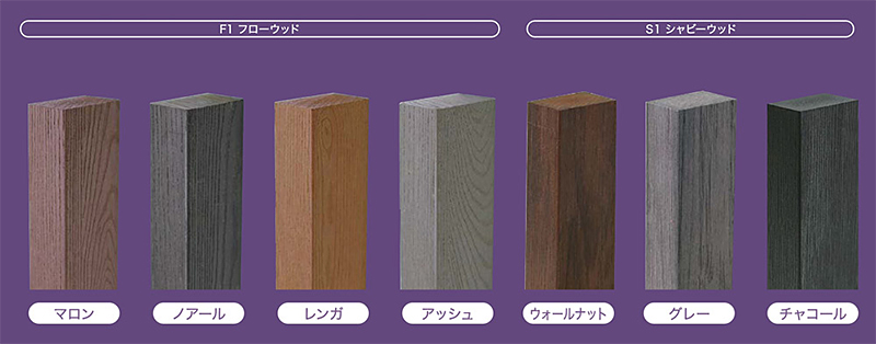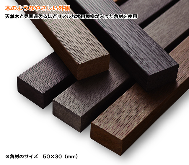 天然木と見間違えるようなリアルな木目模様が入った角材を使用し、モダンから和風まで幅広くデザインします。